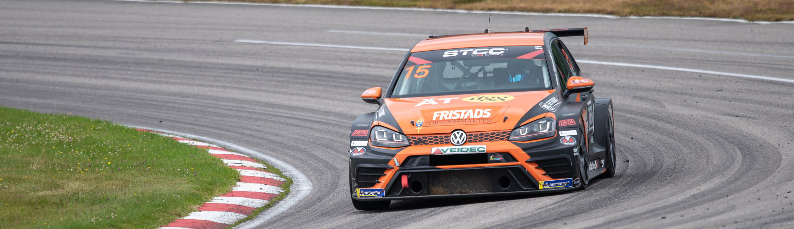 – Det var en frustrerande helg. Bilen funkade inte som jag ville, dels på grund av bromsarna som gjorde att jag fick bromsa 20 meter tidigare. Men även då jag hade problem men hjulspinn, något man absolut inte vill ha på Anderstorp. Trots bristen på fart kunde jag fightas på banan vilket alltid är kul! Säger Oskar efter helgen.